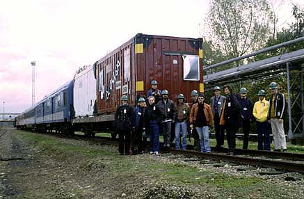 DSM, The Netherlands, Oct. 1998 < group shot of artists visiting the train in 'exile' >