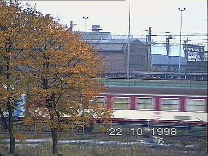 Amsterdam, Oct. 1998 < view from the office, video image of the train on the way to the workshop>